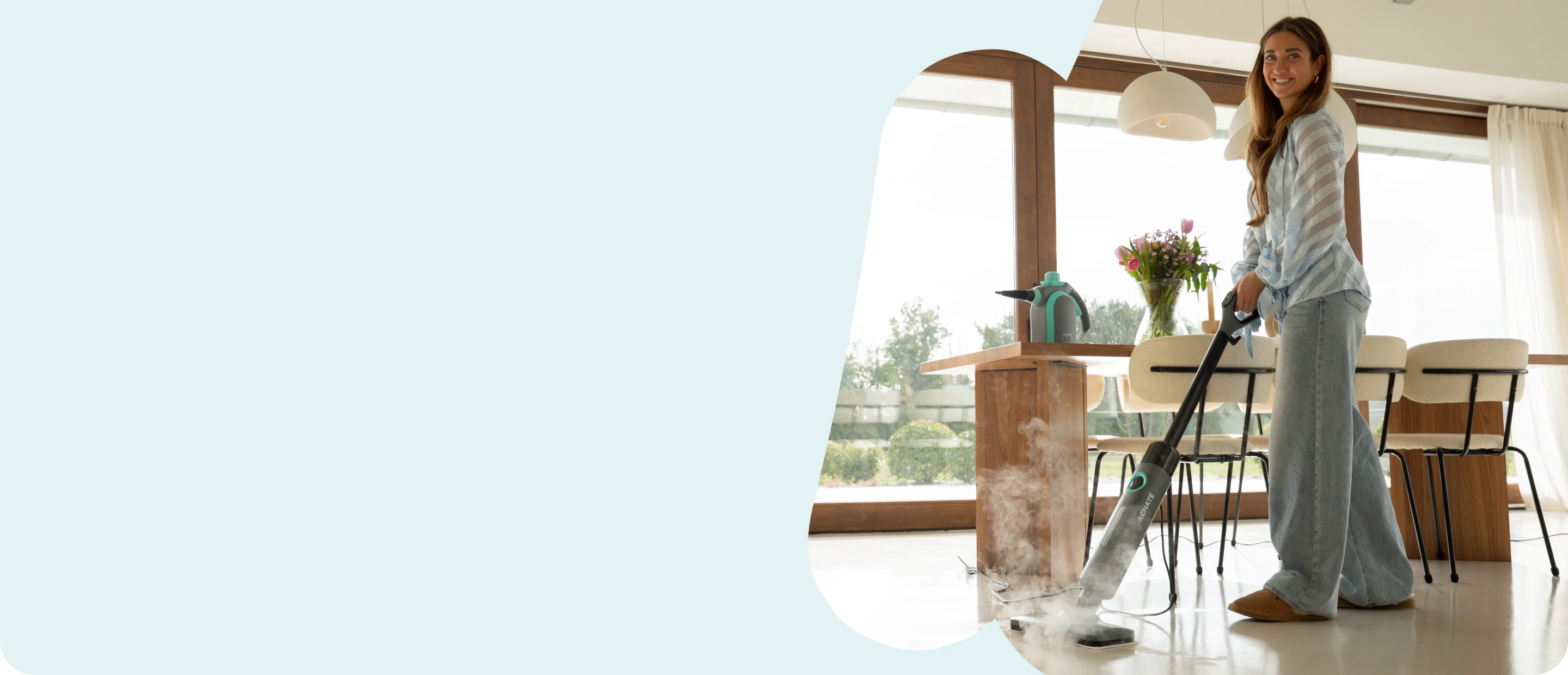 Klein van formaat, groots in kracht. De Achaté handstoomreiniger verwijdert hardnekkig vuil, vet en bacteriën met krachtige stoom — zonder schoonmaakmiddelen. Ideaal voor keukens, badkamers, voegen, kranen en moeilijk bereikbare plekken. Dankzij de meegeleverde opzetstukken heb je voor elke schoonmaakklus de juiste oplossing in handen.