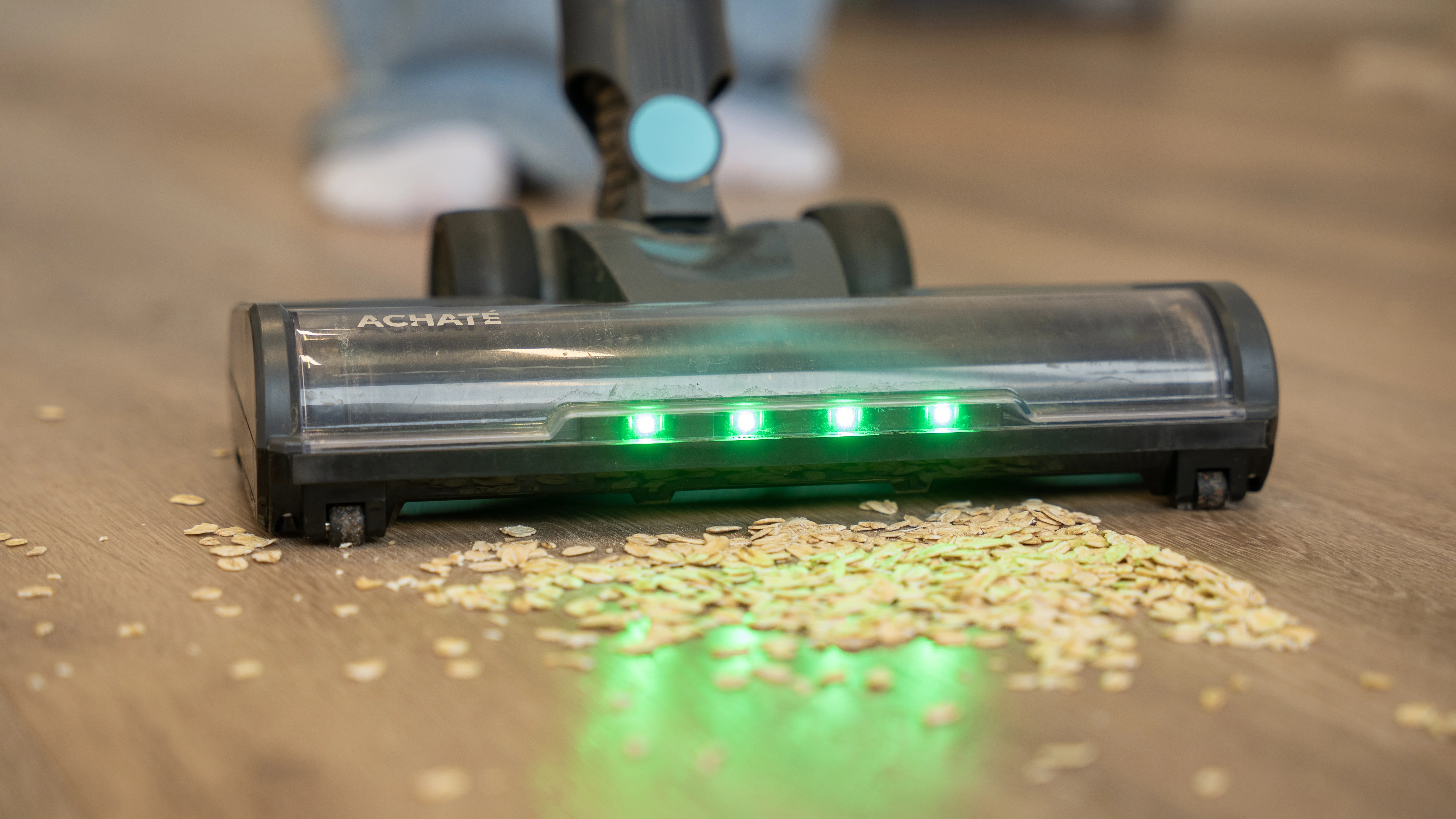 In tegenstelling hiermee is de Achaté Steelstofzuiger PRO speciaal ontworpen met de gezondheid van je vloeren in gedachten. Dankzij slimme stofdetectie en het groene LED-precisielicht reinigt hij diep zonder te krassen, terwijl het lichte, snoerloze ontwerp soepel over alle oppervlakken beweegt.