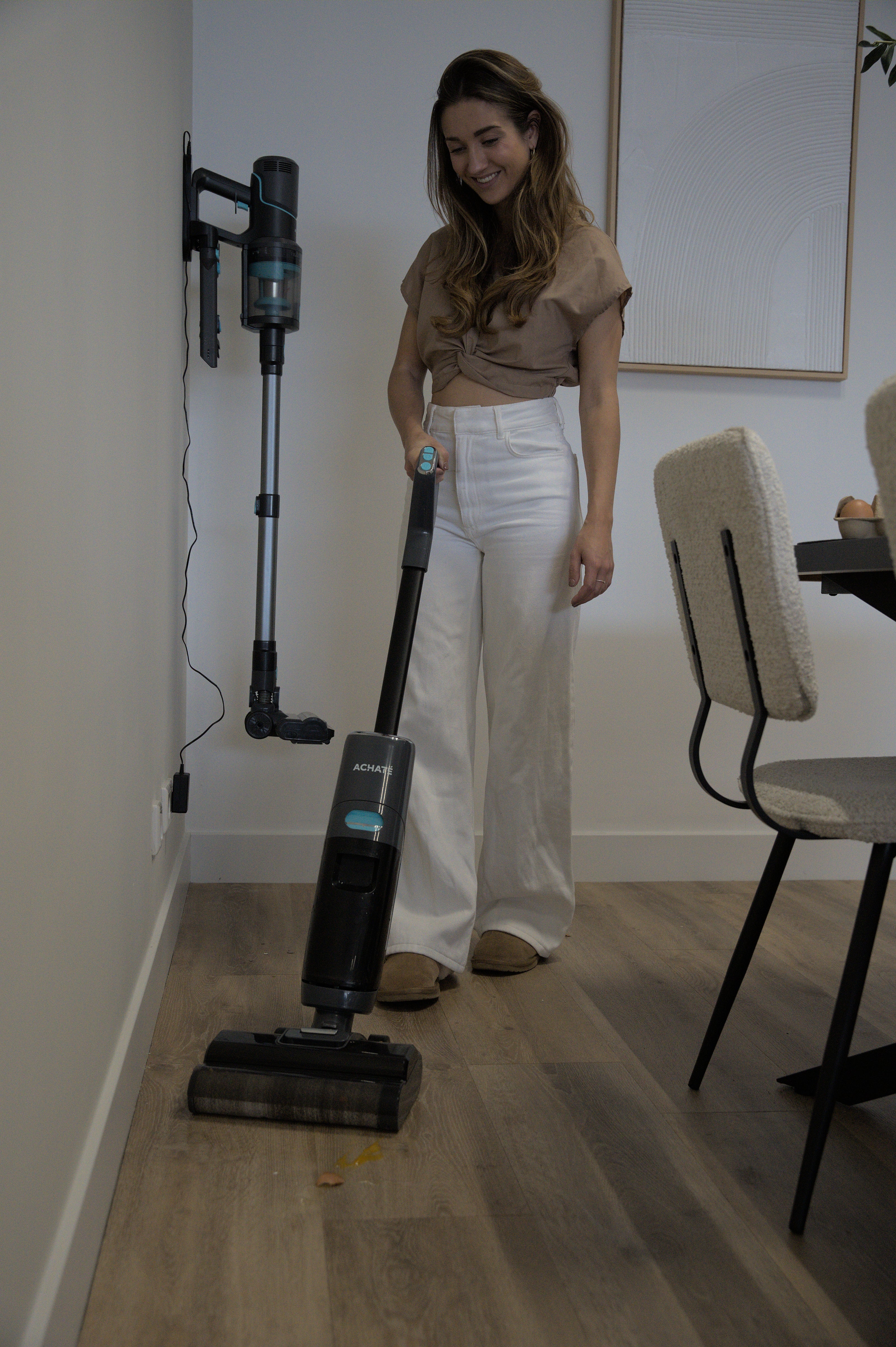 De Achaté dweilstofzuiger gaat echt een verschil maken in jouw schoonmaakroutine. Wanneer je een ei hebt laten vallen en normaal gesproken dit zou opruimen met een keukenrol en dweil of doekjes, is het nu een kwestie van de dweilstofzuiger erbij pakken en het reinigen van de vuilwatertank. En dit geldt natuurlijk voor al die onhandige dingen die ons allemaal weleens overkomen, wanneer je een glas melk laat vallen, je kindje zijn knijpfruit morst of je cornflakes ontbijt op de grond ligt. Of gewoon voor wanneer je zowel wilt stofzuigen als dweilen in één, zodat jij meer tijd overhoud voor andere dingen dan het huishouden.
